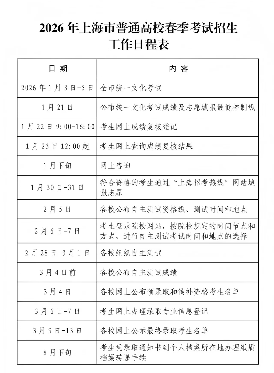 刚刚,上海市教委公布了2026年上海市普通高校春季考试招生(以下简称春考)26所试点院校的招生章程。点击看招生章程