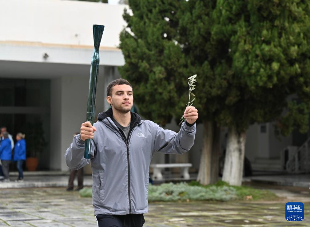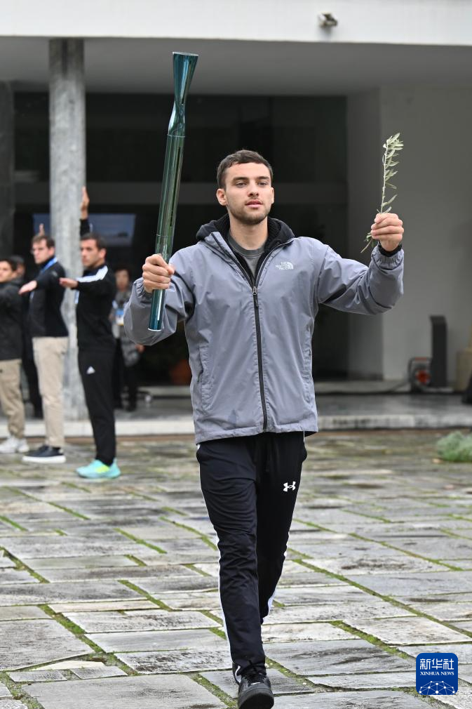 11月25日,第一棒火炬手、希腊运动员彼得罗斯在彩排中。新华社记者 吕优 摄